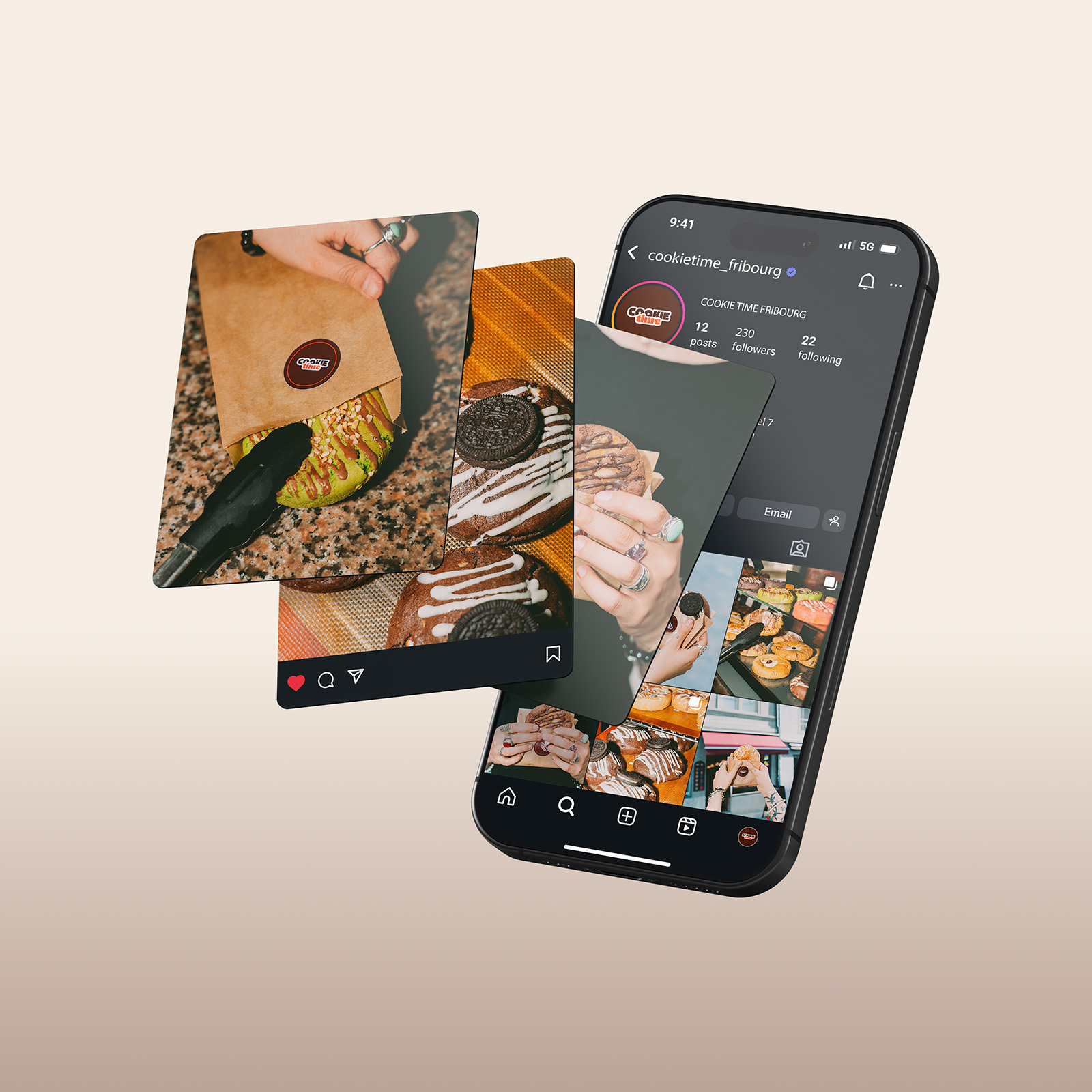 Afin de développer la visibilité de Cookietime Fribourg, nous avons conçu une stratégie de contenu et une identité visuelle, visant à renforcer son attractivité et fidéliser sa communauté.